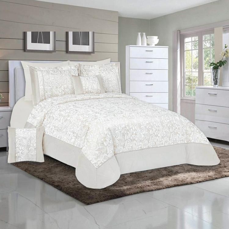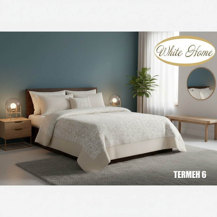 روتختی دو نفره ۸ تکه White Home مدل TERMEH 6 با طراحی کلاسیک و رنگ کرم ملایم، جلوهای آرام و لوکس به اتاق خواب شما میبخشد.