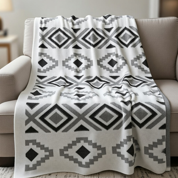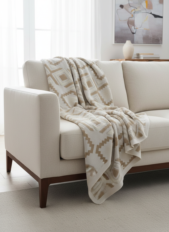 این شال با بافت پانچ برجسته و طرحهای مدرن، بهراحتی با سبکهای مینیمال، بوهو و مدرن هماهنگ میشود و گرما و صمیمیت را به فضای نشیمن اضافه میکند. منگولههای ظریف در کنارهها، جلوهای خاص و متفاوت به کار بخشیدهاند.