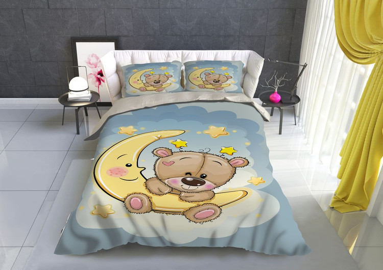 ۱ عدد لحاف شیک: با طرح جذاب خرس و ماه، که به زیبایی تخت شما را میپوشاند.